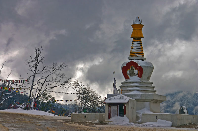 Third Day : After breakfast, drive to Thimphu . The drive to Thimphu is through farm houses, paddy fields and apple orchards. The winding road follows the Paro Chhu till Chhuzomsa ( meaning confluence in Dzongkha ) and for the rest of the journey is along Thinmphu river. It takes about 2 hours to cover the distance of 65 Kms.. En-route view the Simtokha Dzong. This is one of the oldest fortresses in Bhutan located about 6 Kms. from Thimphu Check in at the hotel. After lunch, visit the Memorial Chorten ( a huge Stupa ) built in memory of the third King of Bhutan who reigned the Kingdom from 1952-1972. Visit the National Library where a vast collection of ancient manuscripts are preserved. Visit Tashichho Dzong the main secretariat building. This massive structure houses part of the Government Ministries, the office of the King and the Throne Room and the office and the living quarters of the Monk Body and its Chief Abbot. Evening, leisure in town. Dinner and overnight in hotel.